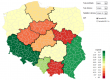Wenn man das Kartogramm auf der Basis der Landkarte Polens vorbereitet, wird man vor die Wahl des Genauigkeitsgrades gestellt. Wenn man als Gebiet die Woiwodschaften wählt, werden die Daten auf allgemeinem Niveau dargestellt, wenn man dagegen die Gemeinden wählt, wird das Bild sehr ausführlich.